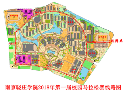 赛程总长5.2公里(2.6KM*2圈)。路线如下:南田径场→南食堂→服务区→北田径场→北大门→文科组团→西大门→ 行政楼→理科组团→体育馆→南田径场。