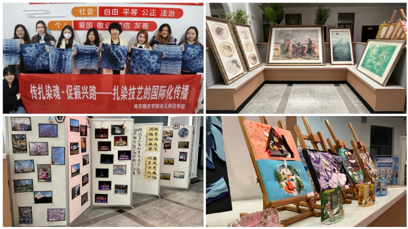 幼儿师范学院以“九八芳华·晓庄情”为主题,展出百余件师生艺术作品,并与海外教育学院共同举办非遗扎染体验活动。幼师院陶亚萍教授现场演示传统技法,并指导留学生制作了印有晓庄校徽的精美扎染作品。活动让更多人体验到了中国传统文化的独特魅力,也为中华优秀传统文化在世界范围的传承和发展贡献了力量。校庆当日,近百名校友重返母校,共栽“校友纪念树”,打卡校史馆,追忆青葱岁月。活动既展现学院艺术底蕴,亦以温情纽带串联师生与校友的晓庄情结。