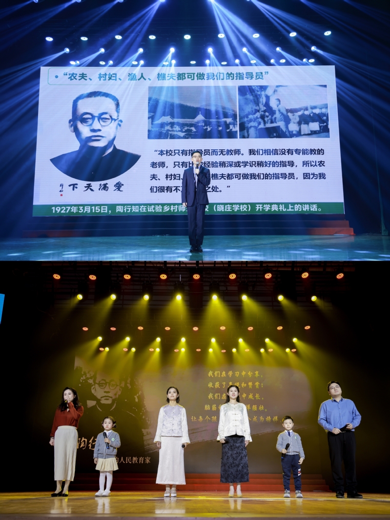 在“扎根·奉献担当”篇章,华体会平台食品科学学院唐翔老师带来的故事分享《渔樵耕读,在躬耕教坛中绘就教育强国美丽画卷》,展现了以全国教书育人楷模杨瑞清为代表的晓庄人守护教育沃土的动人情怀。华体会平台实验幼儿园带来的思政舞台剧《用教育家精神培育新时代小先生》,感受“生活即教育”的真谛,见证新时代“小先生”们的成长。