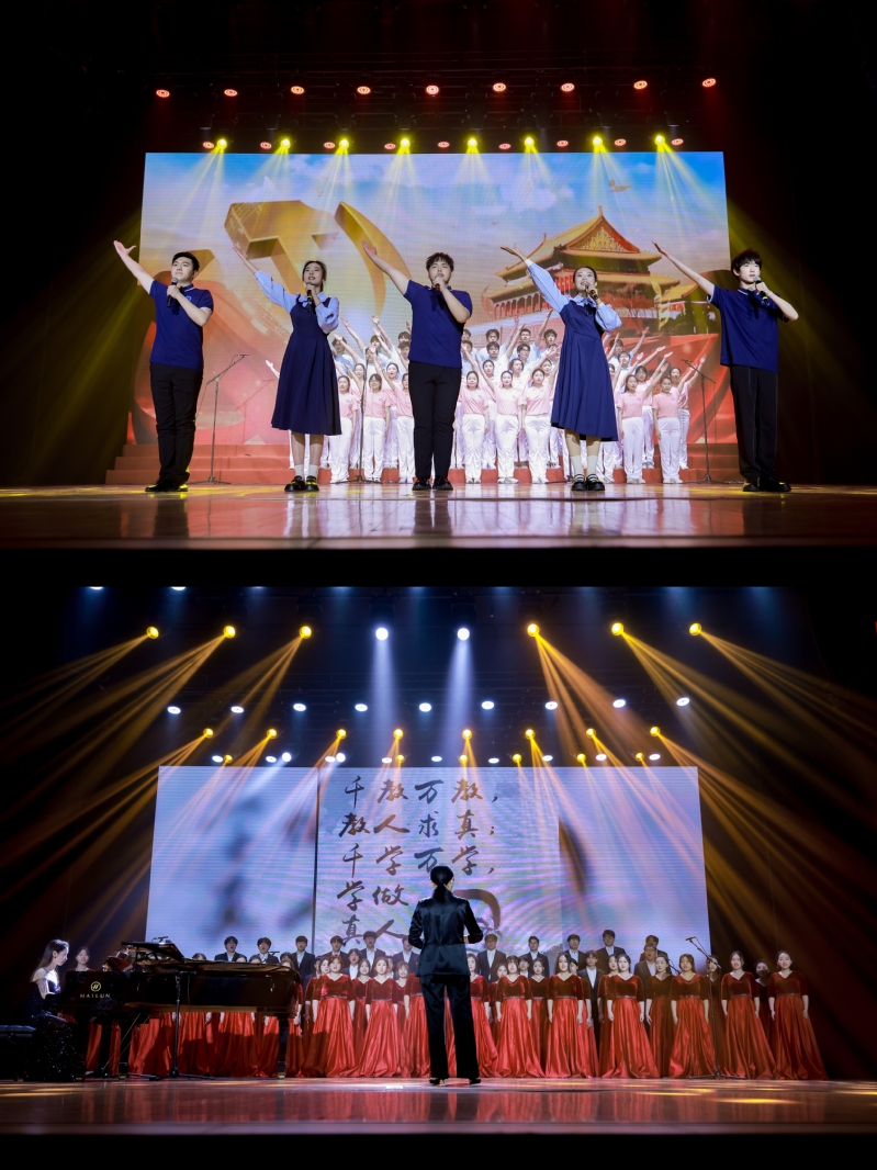 在“百年·强国梦想”篇章,华体会平台音乐学院以诗朗诵《走进晓庄迈向新时代》和原创混声合唱《我行我知》致敬晓庄先贤,让新时代的晓庄人从他们的故事中汲取智慧,坚定前行。
