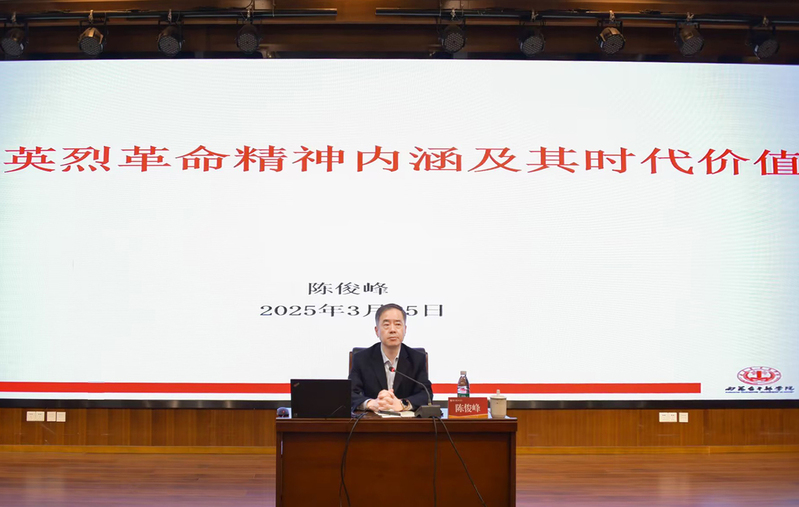 南京市党史宣讲辅导团成员、中山陵园管理局副局长陈俊峰为师生带来了一场题为《雨花烈士的革命精神内涵及其时代价值》的党史专题讲座。讲座围绕雨花英烈群体画像与特征、雨花英烈的革命精神成因、内涵及地位与价值三个方面,从鲜活的个体英烈形象切入,兼顾感性与理性、历史与现实,用翔实的文献资料、生动的语言深刻阐释了“崇高理想信念、高尚道德情操、为民牺牲的大无畏精神”,为青年学子上了一堂精彩的党史教育课。