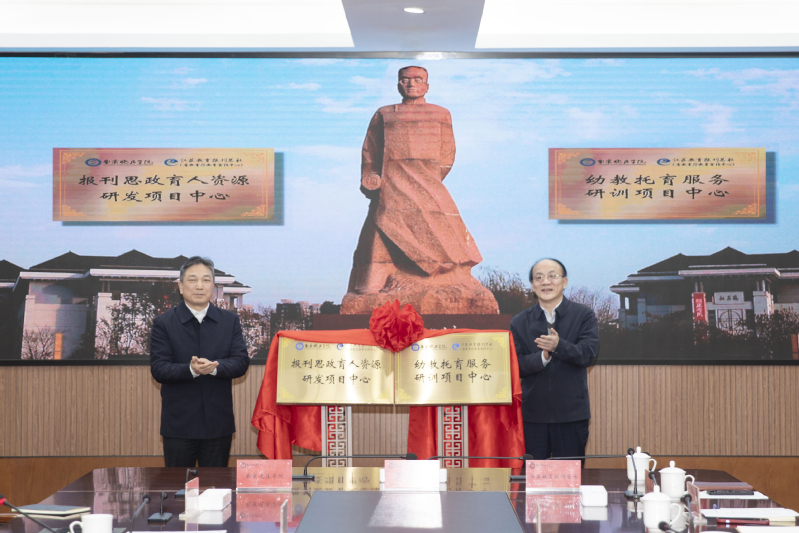 仪式上,张策华与赵建春共同为合作协议中打造的“报刊思政育人资源研发项目中心”和“幼教托育服务研训项目中心”揭牌;王本余与陈瑞昌分别代表双方签署战略合作协议。
