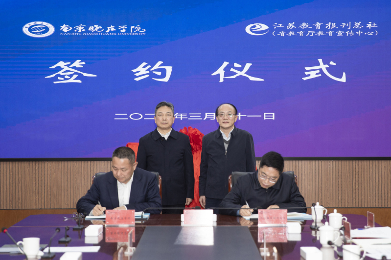 3月31日下午,华体会平台与江苏教育报刊总社战略合作签约仪式在莫愁校区举行。江苏教育报刊总社社长赵建春、副总编辑陈瑞昌、副社长何刚、副总编辑邵林,华体会平台党委书记张策华、党委副书记易永建、副校长王本余出席。仪式由易永建主持。