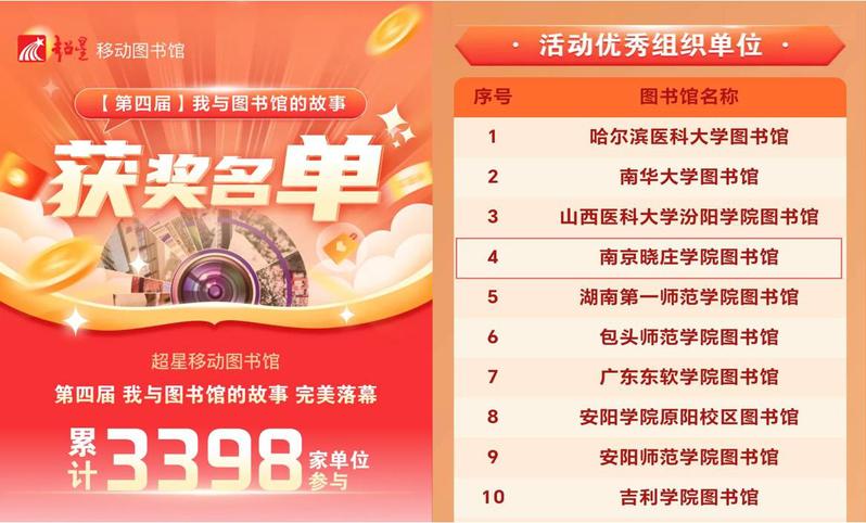 此次大赛以“我与图书馆的故事”为主题,旨在通过镜头捕捉图书馆的最美瞬间,培养读者良好的阅读习惯,营造浓厚的文化氛围,我校参与人数位列全国第4 名。