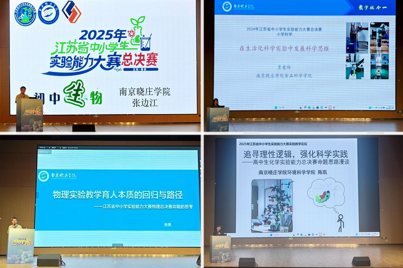 8月11日,江苏省中小学生实验能力大赛总决赛在南京落下帷幕。我校食品科学学院、环境科学学院和电子工程学院等教师团队顺利完成实验知识和实验操作等各阶段的试题命制工作,以及决赛现场的选手考前培训、评委培训、阅卷评分和微论坛报告等工作。在微论坛报告中,我校命题团队向全省参会人员分享了科技前沿动态和大赛的实验创新设计,全面提升参与者的实验能力,推动全省实验育人协同发展。
