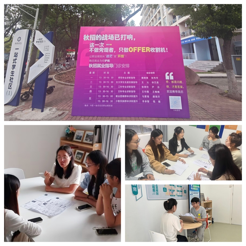 深度整合“一站式”学生社区服务理念,招聘会还同步设置了“征兵咨询”“公考咨询”“简历门诊”等特色服务专区。来自建邺区、江宁区人社部门,雨花台区人武部以及我校经验丰富的就业指导教师组成了党员先锋服务队,在现场为毕业生提供一对一的求职定位、简历修改和面试指导等精细化服务。我校长期依托“一站式”学生社区建设就业指导门诊,并通过“宏志助航”计划对就业困难群体开展精准帮扶,确保就业服务全覆盖、零遗漏。