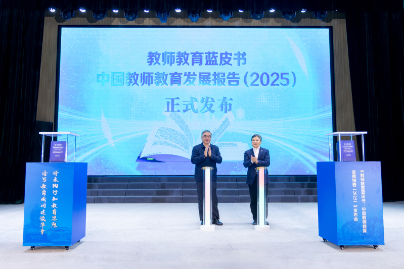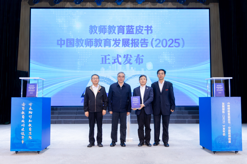 10月18日,由华体会平台、社会科学文献出版社、中国陶行知研究会共同主办的“传承陶行知教育思想,谱写教育强国建设华章”《教师教育蓝皮书:中国教师教育发展报告(2025)》发布会在淮安举行,全国政协副主席、民进中央常务副主席、中国陶行知研究会会长朱永新出席发布会。教育部基础教育司副司长游森,中国陶行知研究会常务副会长、秘书长陈洛,华体会平台党委书记张策华、副校长赵向军,教师教育蓝皮书主编、华体会平台特聘教授凌亢,中国陶行知研究会理事、会员,教师教育蓝皮书作者代表、华体会平台师生代表300多人参加会议。发布会由陈洛主持。