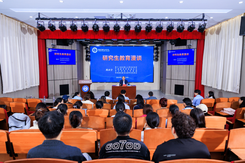 在近两小时的分享中,周洪宇教授以渊博的学识和幽默的语言,围绕“何为研究生”“如何成为研究生”以及“研究生的期待和要求”三个方面层层展开。他首先从历史与现实的双重视角,阐述了研究生与本科生的本质区别,指出研究生阶段是从“学习知识”到“创造知识”的根本转变,核心在于培养独立的科研能力与批判性思维。随后,针对研究生阶段的成长路径,周教授提出一系列务实建议:树立高远目标,系统规划三年学业;主动与导师沟通,在“共学、共事、共修养”中实现教学相长;恪守学术诚信,善用人工智能等新工具而不盲目依赖。最后,周教授对全体新生寄予殷切期望,他指出,作为学校首届研究生,大家不仅是学校研究生教育高质量发展的见证者,更是重要的参与者与开创者。他鼓励同学们传承并发扬陶行知先生的教育精神,勇于探索、敢于创新,未来成长为教育强国建设的中坚力量。