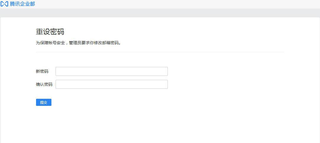 2.点击“新版邮箱”图标,跳转到重设密码修改页面,请用户设置一个新密码,设置密码后即可进入邮箱使用。此密码也可以在用户直接登录mail.njxzc.edu.cn时配合邮箱名使用。