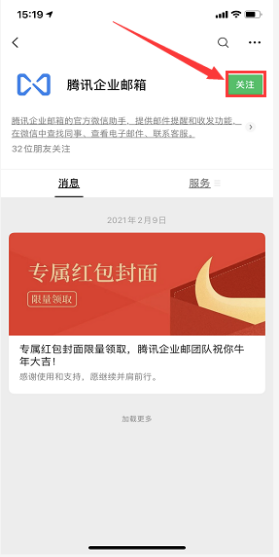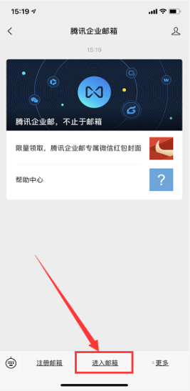 (3)打开微信,找到“腾讯企业邮箱”点击关注,在界面的下端点击“进入邮箱”,打开邮箱界面,可以查看邮箱收发情况。