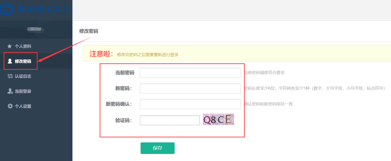 4.选择修改密码,并在右侧填写旧密码,设置强度符合要求的新密码,保存并妥善保管。