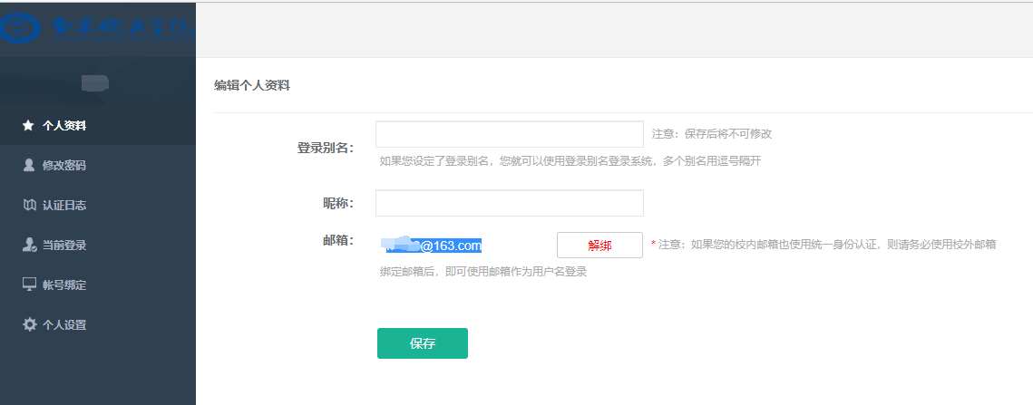 5.选择编辑个人资料,填入自己常用的邮箱名,将来忘记密码的时候可用这个邮箱找回。