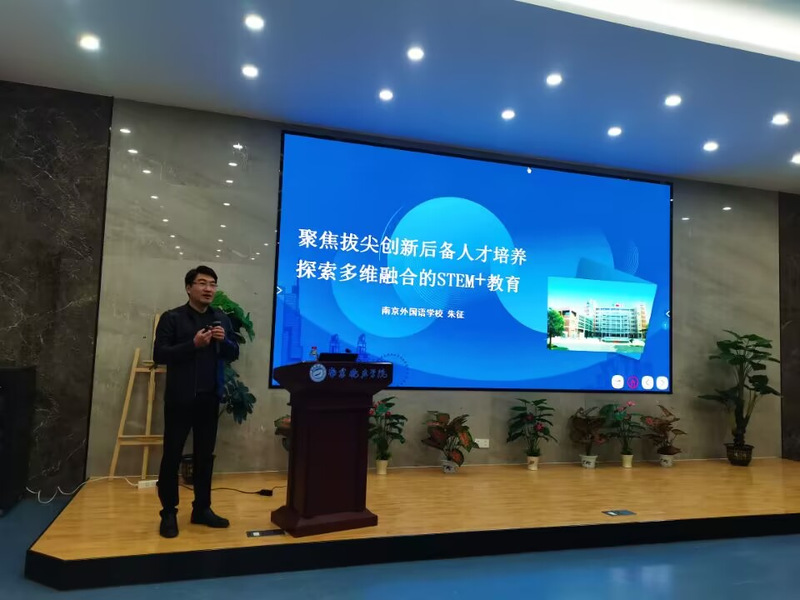 3月29日,南京外国语学校副校长、方山分校校长朱征应邀为我校师生作“聚焦拔尖创新后备人才培养,探索多维融合的STEM+教育”主题学术讲座。朱征系南京大学教育博士、江苏省特级教师、正高级教师、“苏教名家”培养对象。